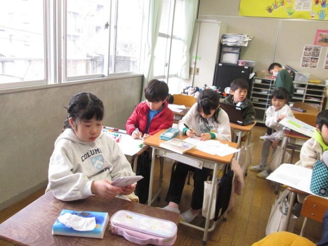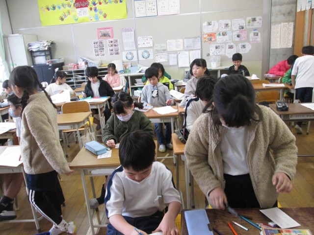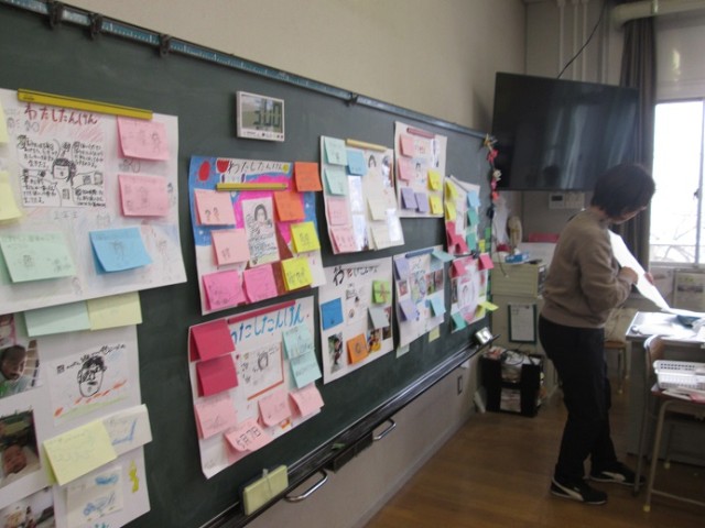 2年3組は、生活科「わたしたんけん」のまとめです。仕上がった子の作品は黒板に貼られていました。みんな、とっても大きく成長したことがわかりますね!