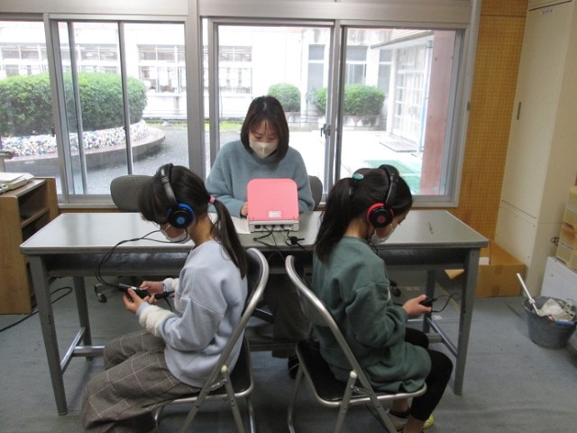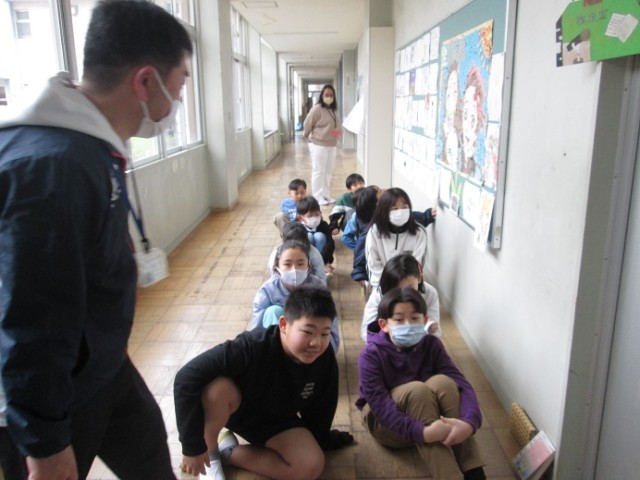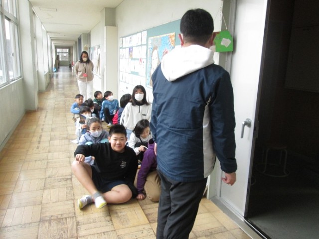 4年4組は聴力検査の時間でした。廊下に静かに並び、順番を待っています。中では、2人ずつオージオメーターで聴力検査をしています。