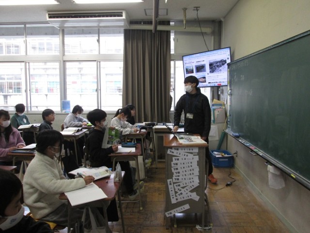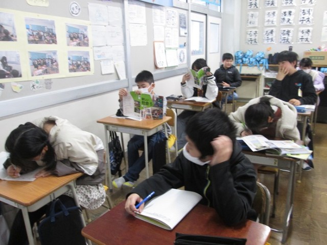 5年2組は社会科「環境を守るわたしたち」の学習です。グラフから水の汚れの物差しとなるBODの値を読み解きながら、川の汚れについて考えていました。算数のグラフの学習が生かされます。