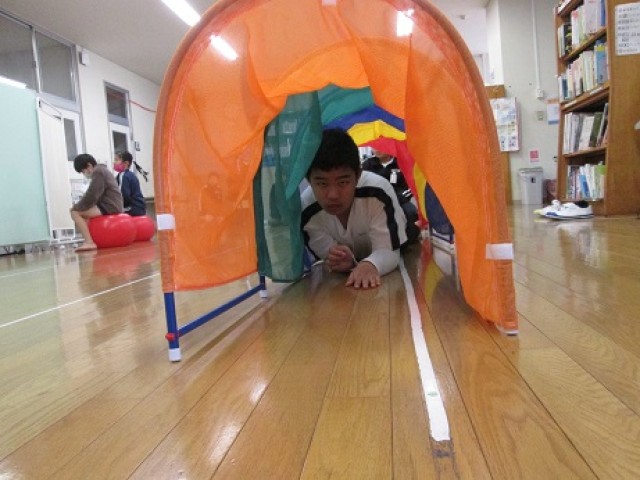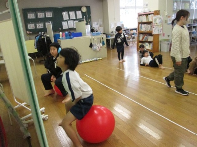 仲よし学級の学習の様子です。今日は室内で体育を行っていました。みんな基礎体力をつけるトレーニングを意欲的にしています。
