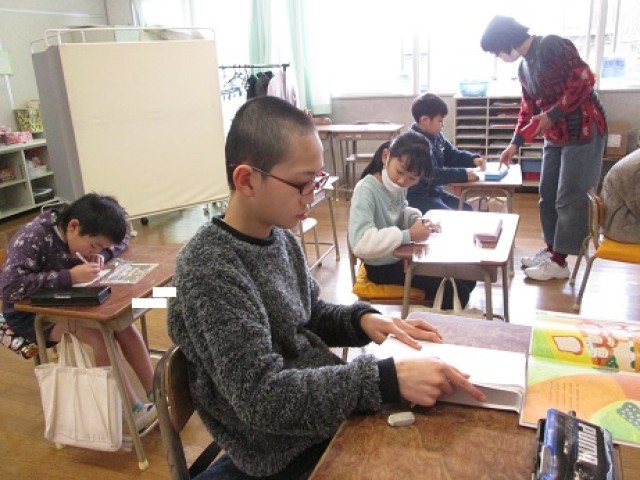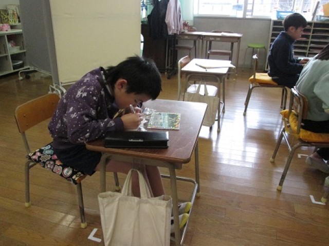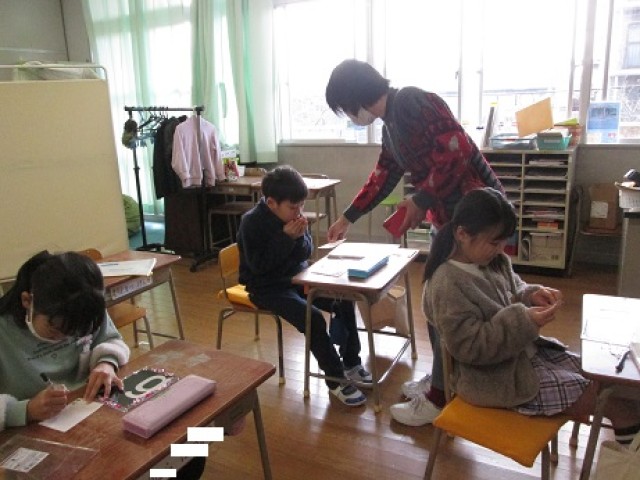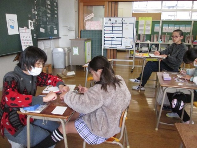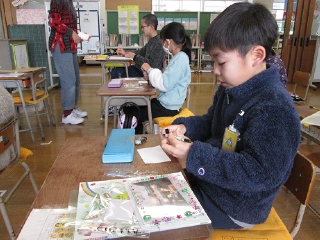 仲よし学級の学習の様子です。1年間のまとめとして作品制作を行っていました。
