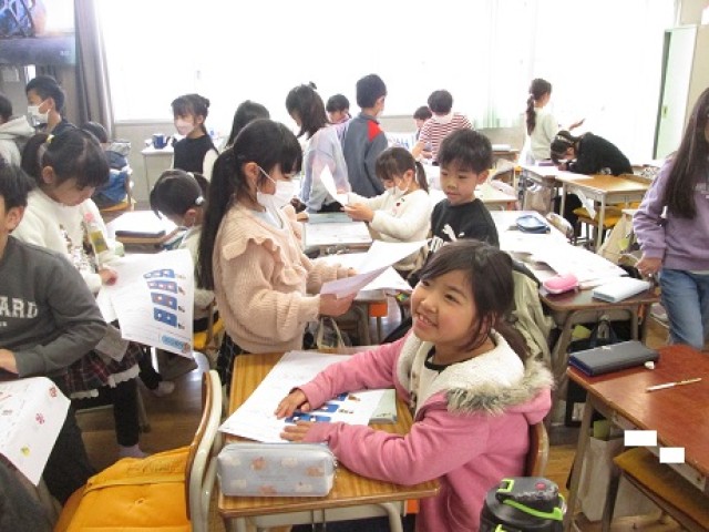 2年1組は国語で学年のまとめを行っていました。テスト返却の後、テスト直しをして履修状況を確認をしました。