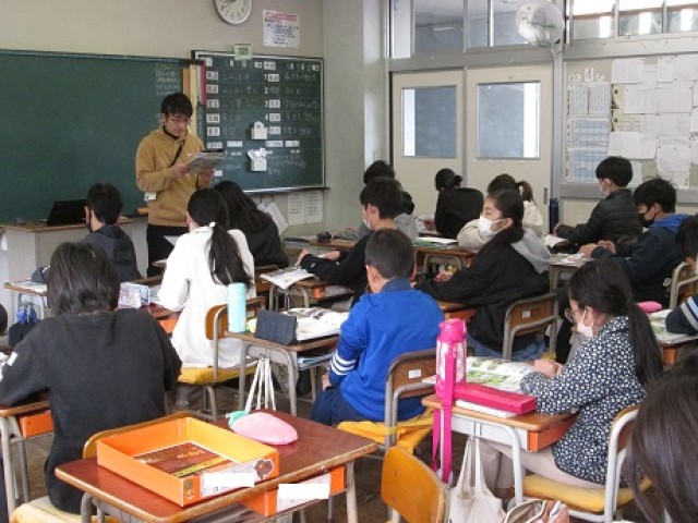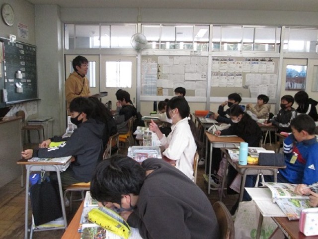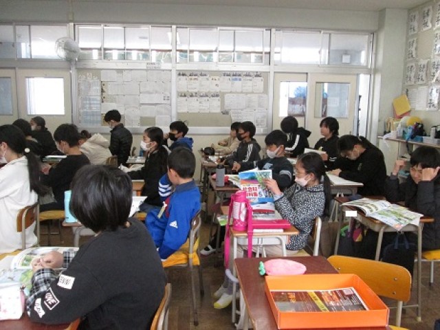 5年1組は社会で「林業で働く人」という教材を学習しています。森林を守り育てる人の仕事内容について、教科書や資料集を使って調べました。