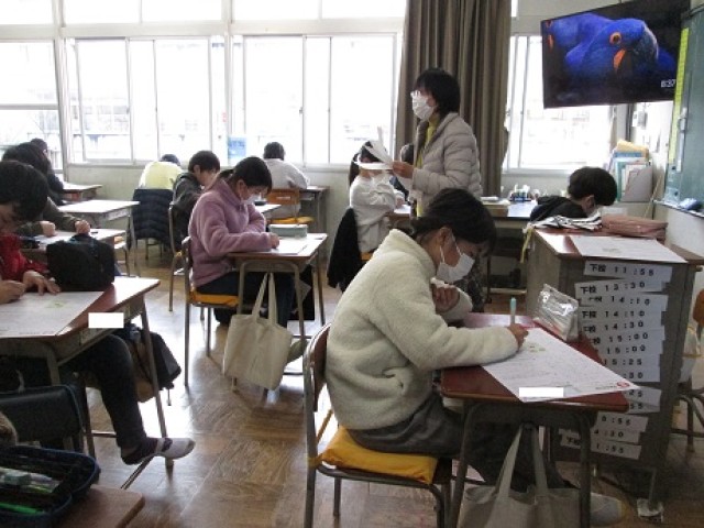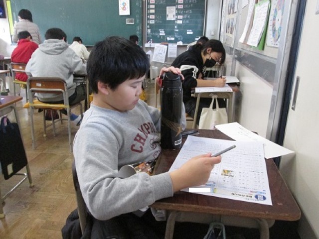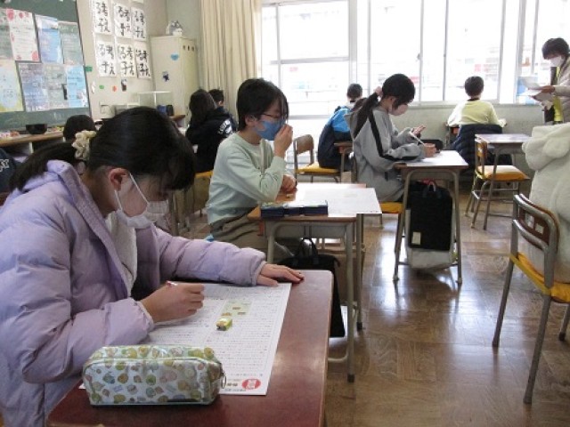 5年2組は国語で学習のまとめとして単元テストを行っていました。みんな真剣な表情で取り組んでいました。