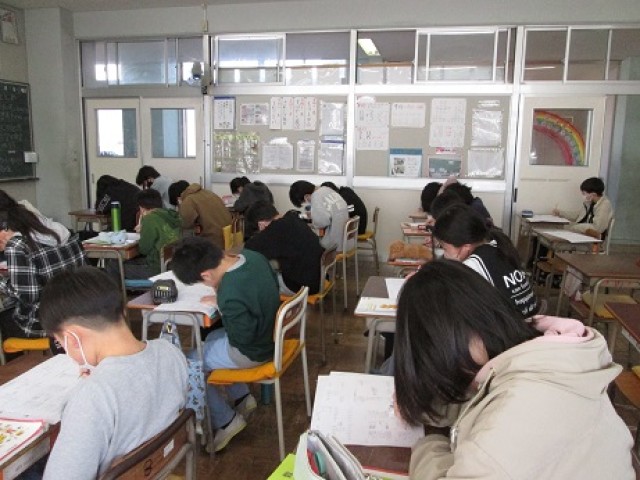 5年3組は国語で既習事項の確認のため単元テストを行いました。みんな集中してペンを走らせていました。