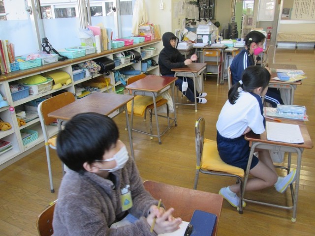 なかよし3組も「ありがとうのお手紙」を書くところです。どんなことを書こうかと思い出しながら内容を考えていました。