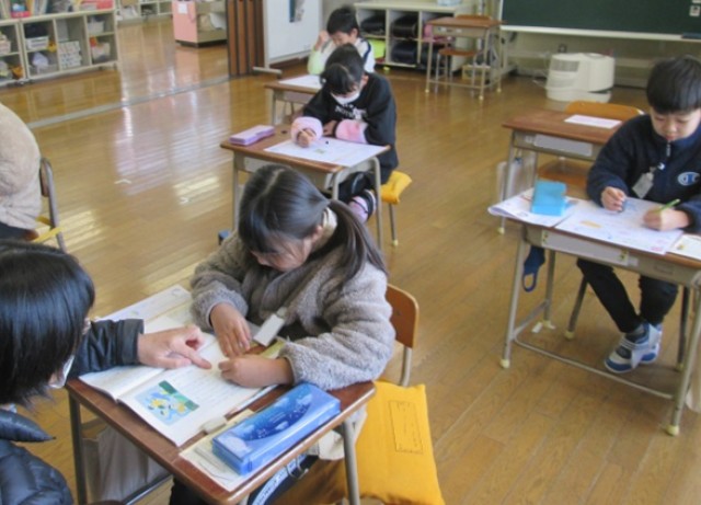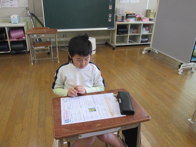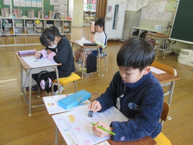 なかよし4組は、それぞれの学習に取り組んでいます。まとめのテストに取り組んでいる子、国語を学習している子など、いよいよ1年間のまとめです。
