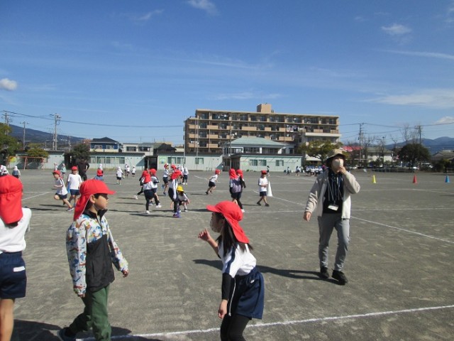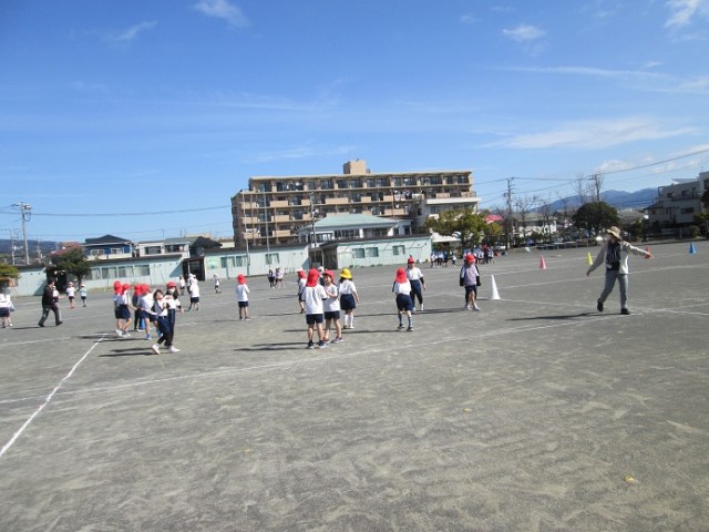1年生は全クラス、体育の授業です。1組はボール遊びです。楽しそうにメディシングボールもやっていました。ボールの扱い方も上手になってきましたね。