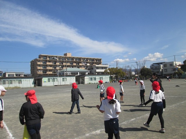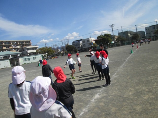 3年3組も体育「キックベースボール」の学習です。こちらでもルールの確認をしながら活動していました。どういうときにアウトになるのか、どういうときに問題になるのかを、みんなで確認しながら取り組んでいました。ルールの工夫はとっても大切な学習です。
