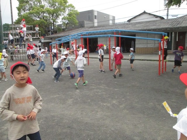 先週から月曜日までは特別日課だったため昼休みはなく、昨日は掃除の日だったので、今日は1年生にとっては初めての「昼休み」でした。2年生以上も久しぶりの昼休みとあって運動場にはたくさん子、先生方が出ていました。少し雲はありましたが、気温は高かったのでこまめに水分補給をしてほしいところです。自分自身で水分補給をする習慣を身につけましょう。