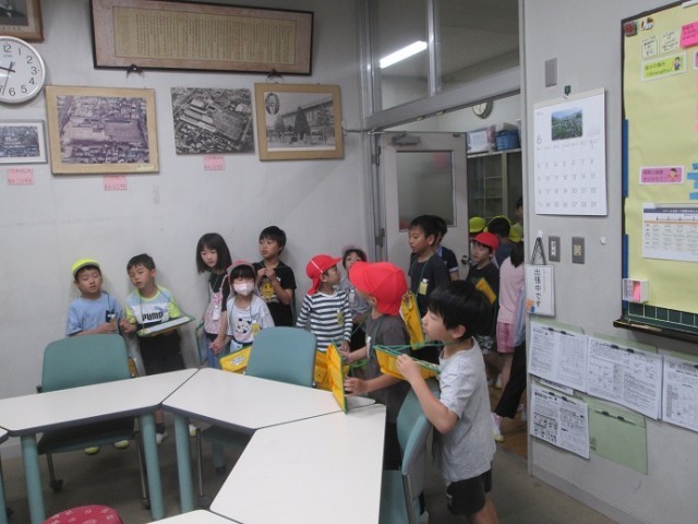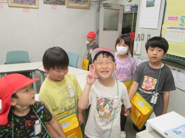 職員室前や事務室前も1,2年生の探検家達でいっぱいです。この後、校長室にも探検家達がやってきました。恐る恐る校長室に「失礼しま~す」と入ってきました。