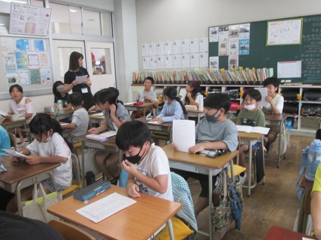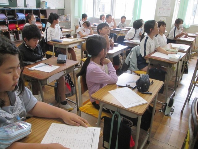 2,4組は、「学習習慣チェックシート」の説明です。普段から聞き方などについては、話す人を思いやる聞き方をしていると思いますが、ここで先生から聞き方のポイントをさらに詳しく聞いていました。「うなずきながら聞いてるよ」という子も多くいました。※これは本校のグランドデザインにある「よく考える子」の育成の取組みの1つです。ご家庭でもお子さんと確認してみてください。