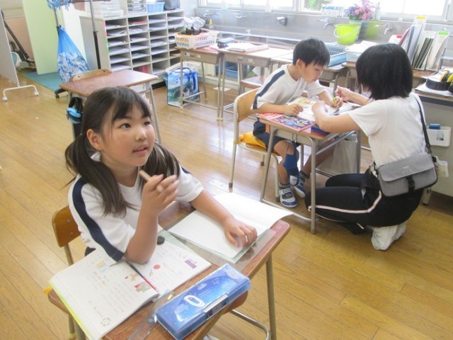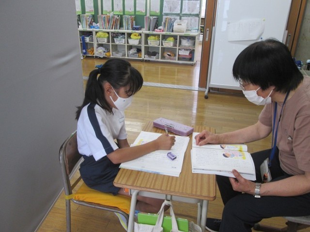 5組は国語の学習です。物語を読み進めたり、新出漢字に取り組んだりしました。「難しい漢字が出てきたよ」という子もいました。1文字1文字、覚えていきましょうね。
