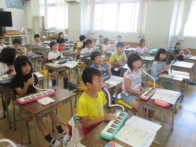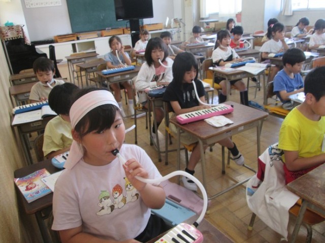 2年1組は音楽「かっこう」で鍵盤ハーモニカの練習です。なかなか全員でそろえるのは難しそうでしたが、一生懸命練習しています。