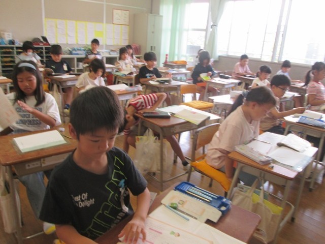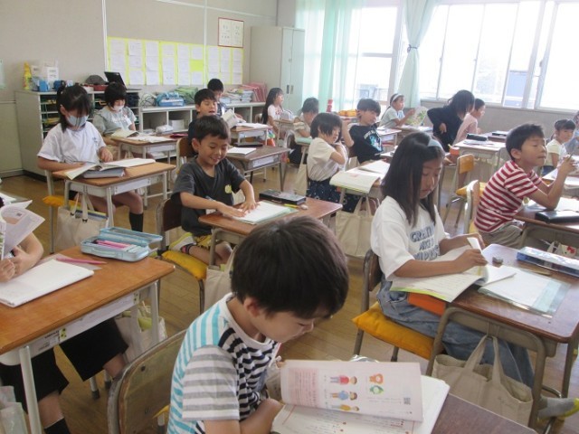 3組は、国語「名前を見てちょうだい」の第五場面です。「場所は○○だよね」と友達同士で、今日の学習の見通しをもった発言のやりとりが聞かれました。