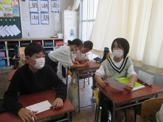 4組はペア活動の名刺づくりです。1年生が相手なのですべてひらがなで作っています。