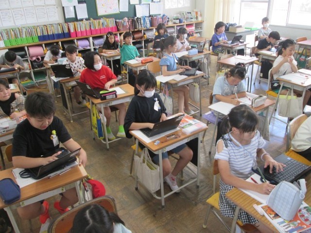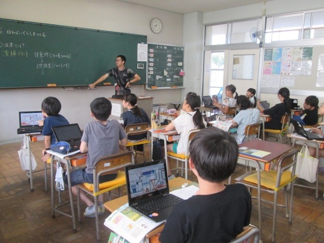 4年1組は社会科「住みよいくらしをつくる」の学習で、沼津市の清掃プラントについて考えていました。「焼却するのに、冷却を行うのはどうしてなの?」というつぶやきが聞かれました。たくさんのはてなが出てくるといいですね。
