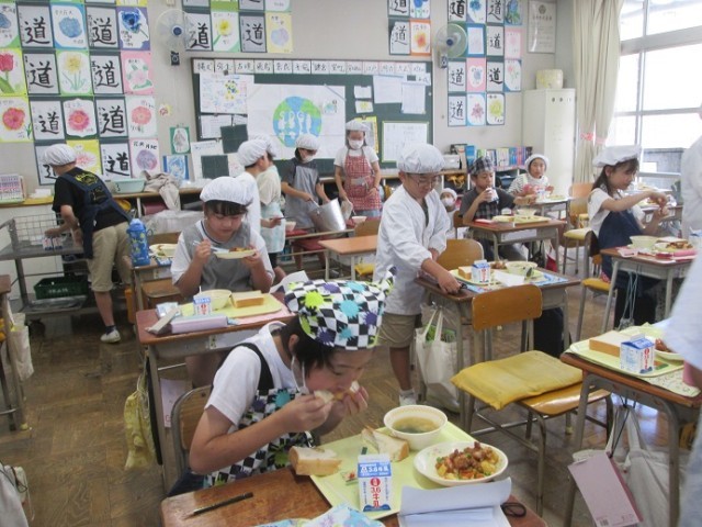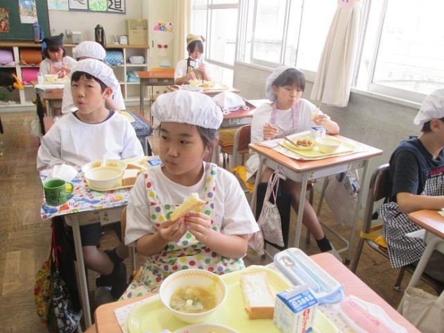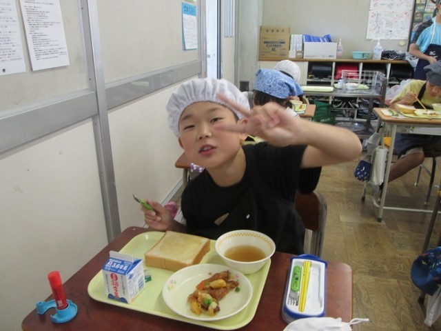 やっぱり人気は鶏肉と大豆の揚げ煮でしょうか。でも、「グリーンピースは苦手~」という声もちらほら。それでも残さずもりもり食べていました。