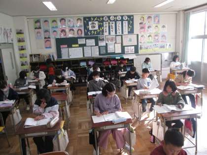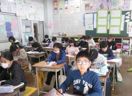 4年3組は算数「小数のかけ算」です。小数点をどこに打つかを考えていました。
