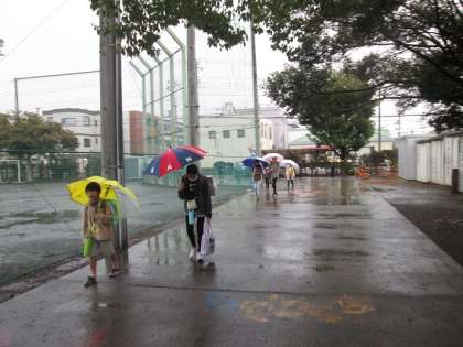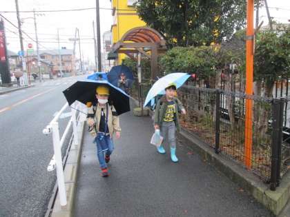 12/15(金)雨の週末を迎えました。子供たちは色とりどりの傘をさしながら登校しています。