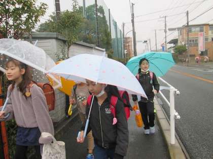 東門の信号機のところに警察の方が立ってくださっていました。やはり、雨の日は事故も多くなりますので、子供たちが安全に登校することを願うばかりです。