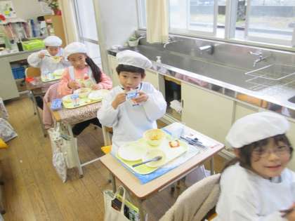 1年生の様子です。「カレーが一番好き〜!」「昨日もカレーだったよ!」(給食あるあるですね!)と言う子もいました。