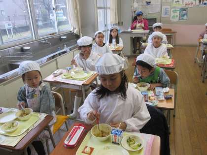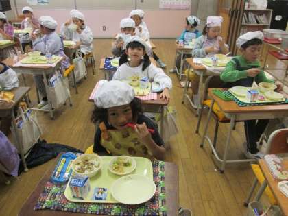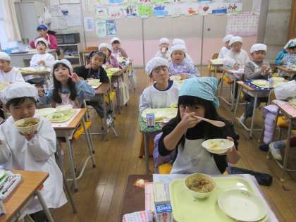 あっという間に完食している子もいました。やっぱりカレーは人気のメニューです。今日もおいしい給食、ごちそうさまでした。