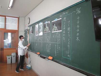 最後に教科書見開き1ページを使ったモチモチの木については時間がなくなったため詳しくは聞けませんでしたが、挿絵からこんなにイメージが広がり、また文章に戻るという子供たちのすばらしい姿が見られた授業でした。