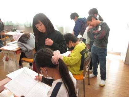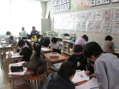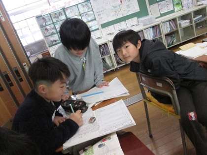 3年4組は、国語で「『はてな』を調べて書こう」という教材を学習しています。今日は、友達が考えた文章を読み込み、感想を伝えあっていました。