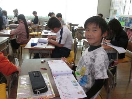 3年2組は、国語で2学期の学習まとめを行っていました。2学期に習った漢字について、漢字ドリルに書き込みを行っていました。
