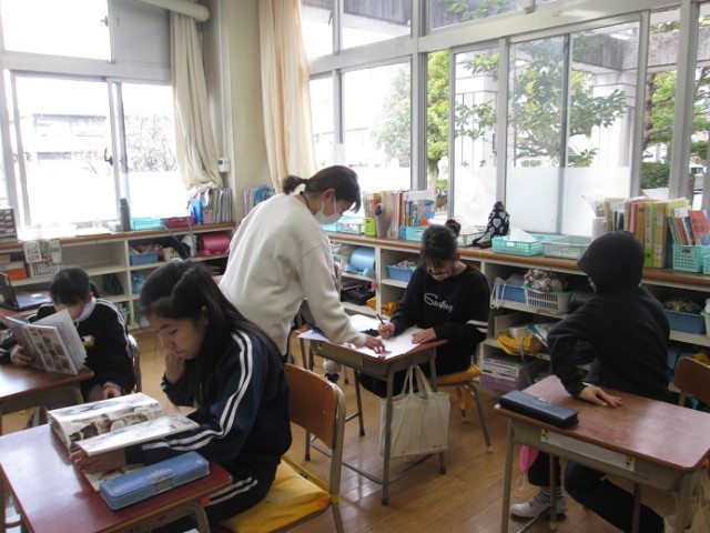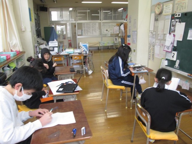 なかよし3組は、学習発表会の準備をしていました。6年生は一番印象に残った修学旅行についてまとめています。習字を披露する子もいるようです。