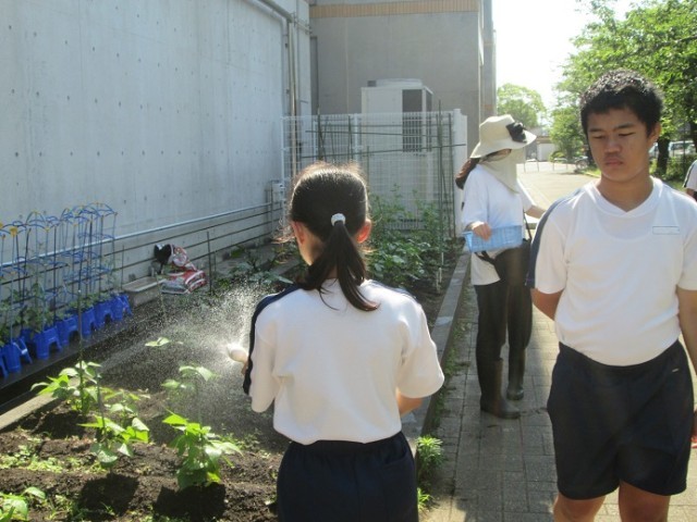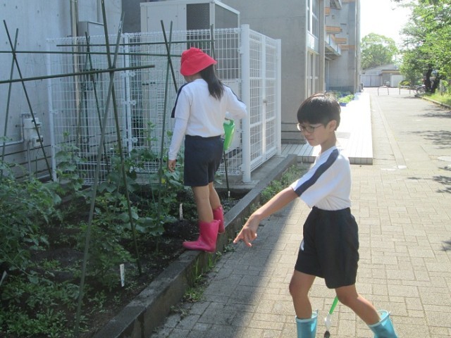 なかよしは学級菜園のお世話をしています。今日はナスが何本か収穫できたようです。ミニトマト、つるなしいんげん、きゅうりなどもだんだん大きく成長してきています。大事に育ててくださいね。
