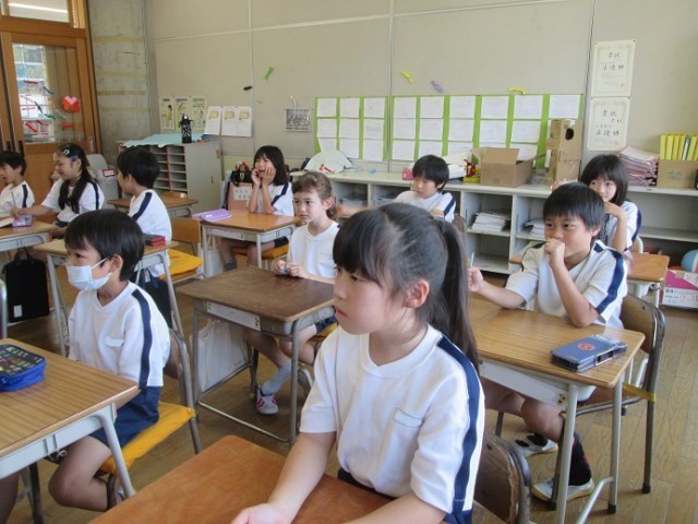2組は学活で「クラスがよくなるルール」について、みんなで話し合っています。みんながよいクラスにするために、いろいろな意見を出しました。先生は、「けんかは絶対に悪いってことではないこともある。けれど~」と話します。「けれど」の後をみんなで考えました。2の2が今よりもっともっとよいクラスになるように今日の話し合いを思い出しながら生活していきましょう。