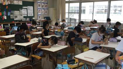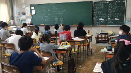 3時間目の5年生です。自分と友達の意見や作品の違いから、学ぶことはたくさんあります。