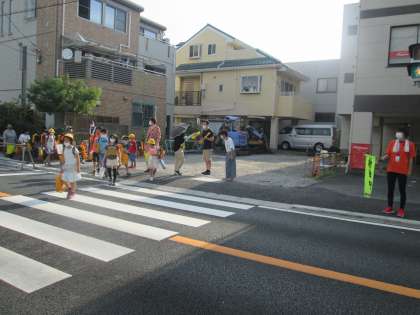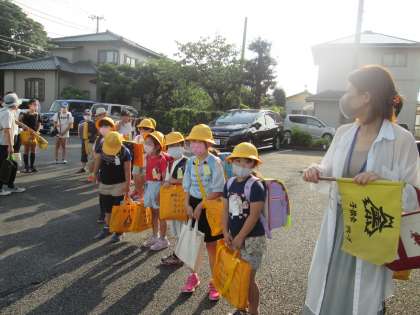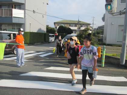 子どもたちは、PTA理事の皆様・子供会世話人の皆様に見守っていただきながら、暑さに負けず元気に、そして安全に登校してきました。
