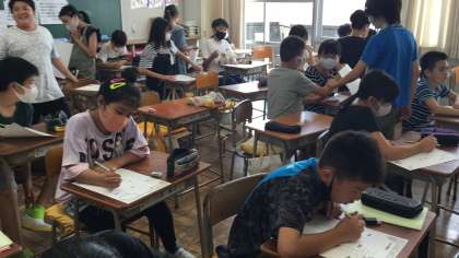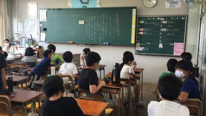 2学期初日、6年3組、4組の教室です。2学期には、6年生としての活躍の場がたくさんあります。金岡小の顔として、頼りにしています。