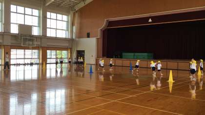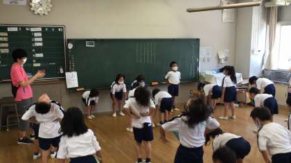 3時間目の1年生です。体育の学習です。授業時間は45分間ですが、暑さが厳しいので、内容や時間、場所を工夫して活動していきたいと思います。