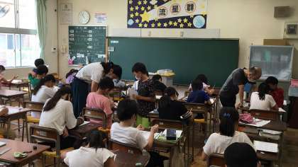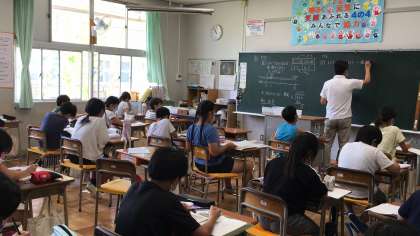 昨日の4年生の教室風景です。いつもの年ならまだ夏休み中ですが、今年は学校です。子どもたちは学習をがんばっています。