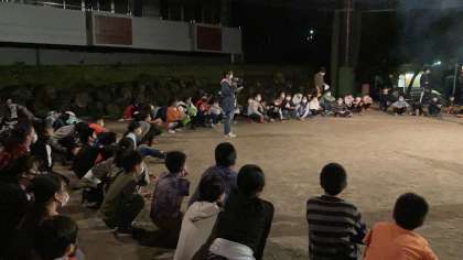 退所式です。思い出と感謝の気持ちを胸に、この後バスに乗る予定です。