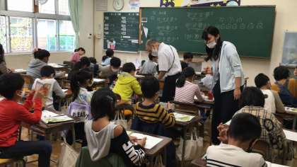 3時間目の4年生です。算数、理科をがんばっています。雨風の音が教室にいても聞こえますが、集中して学習しています。