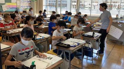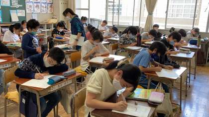 2時間目の5年生です。社会、書写、音楽と落ち着いて学習しています。自然教室が終わって、また一つ成長しています。
