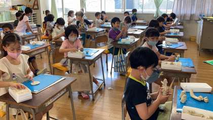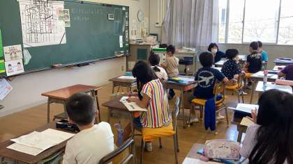 2時間目の2年生です。生活科、図工の時間です。生活科では、校区探検に向けての準備を進めています。