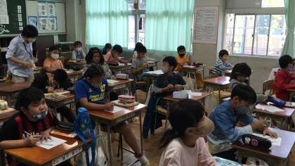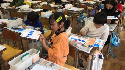 2時間目の4年3組、4組です。3組は図工、4組は理科の学習です。集中して課題に取り組んでいます。