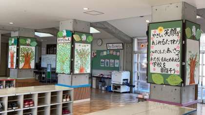 児童会の声かけから全校で取り組んでいる「ありがとうの木」です。友達へのありがとうの葉がいっぱいになりました。