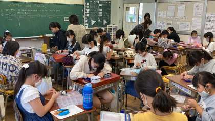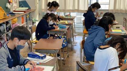 子どもたちが楽しみにしているクラブの時間です。ビーズクラブ、イラストクラブ、切り絵クラブです。