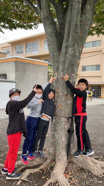 涼しさを感じる朝の運動場です。「校長先生、セミがいます。」4年生が見つけ、教えてくれました。びっくりです。