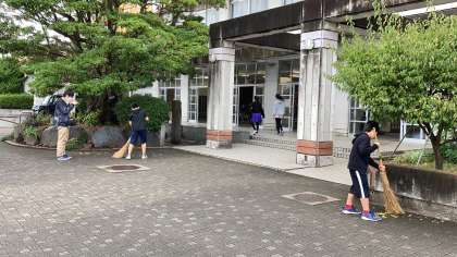 朝の風景です。6年生有志が自主的に児童玄関前の落ち葉掃除をしています。校内に自然が多いのも自慢ですが、この子どもたちの姿は、それ以上です。きれいな心と行動力、ありがとうございます。