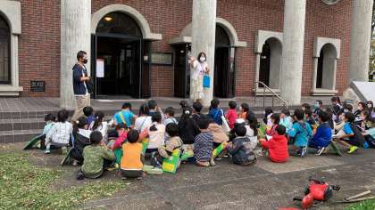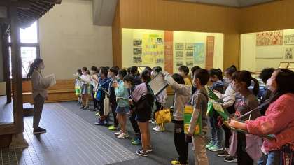4年生は、総合的な学習の時間で江原素六先生について学習しています。今日は沼津市明治史料館で、職員の方に教えていただいたり、自分たちで調べたりしながら、江原素六先生について学びました。