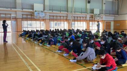 26日(月)の様子です。朝、6年生の学年集会を行いました。修学旅行に向けた最終確認も学年全体で行いました。いよいよ、29日(木)出発します。