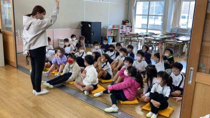 2時間目の1年生です。室内で運動を行いました。友達のよいところを発表することができました。